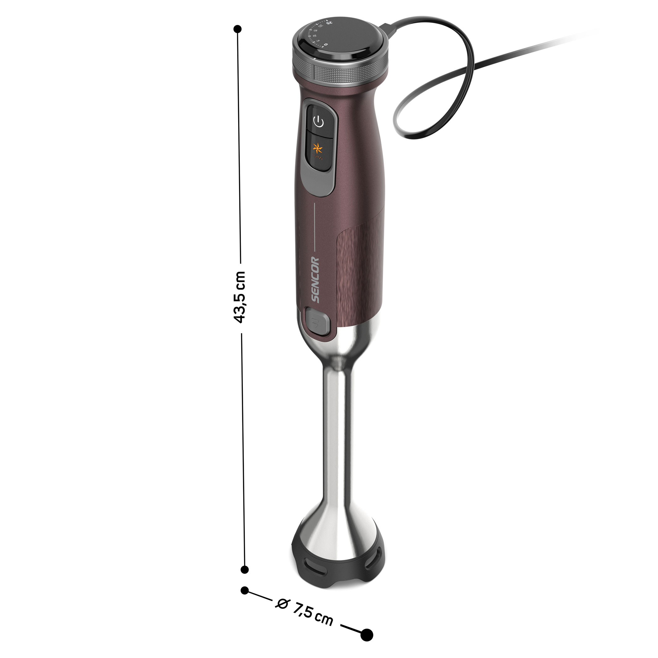 • Rozměry tyčového mixéru (š × h × v): 7,5 × 7,5 × 43,5 cm