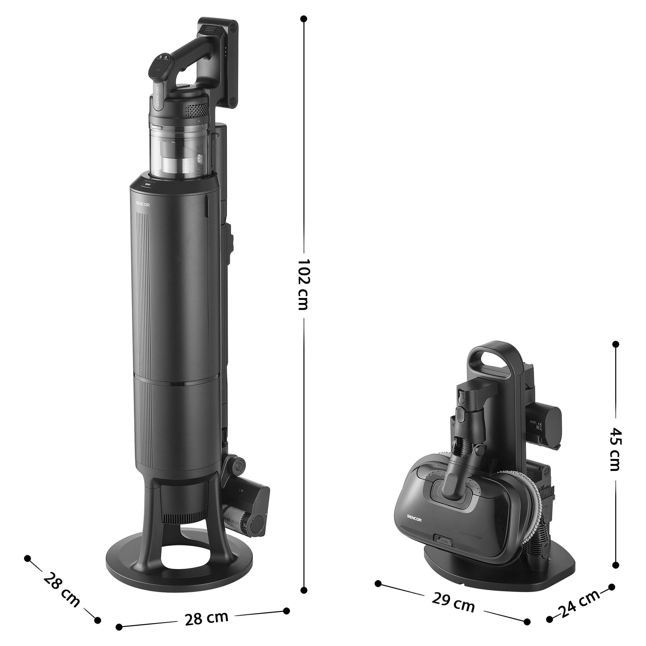 110 minut. Motorizovaná podlahová hubice s MicroDust Vision LED osvětlením a UV-C sterilizací zviditelňuje prach a dezinfikuje povrchy. Parní hubice Aqua Spin Steam současně mopuje, vysává a čistí párou, díky dvěma rotujícím mopům odstraní nečistoty, horká pára hygienicky vyčistí povrch bez chemie a UV-C světlo pomáhá likvidovat mikroorganismy. Motorizovaný rotační kartáč Cat & Dog s UV-C technologií hloubkově čistí čalounění i matrace, ze kterých odstraňuje nejen chlupy a vlasy, ale i bakterie a roztoče.