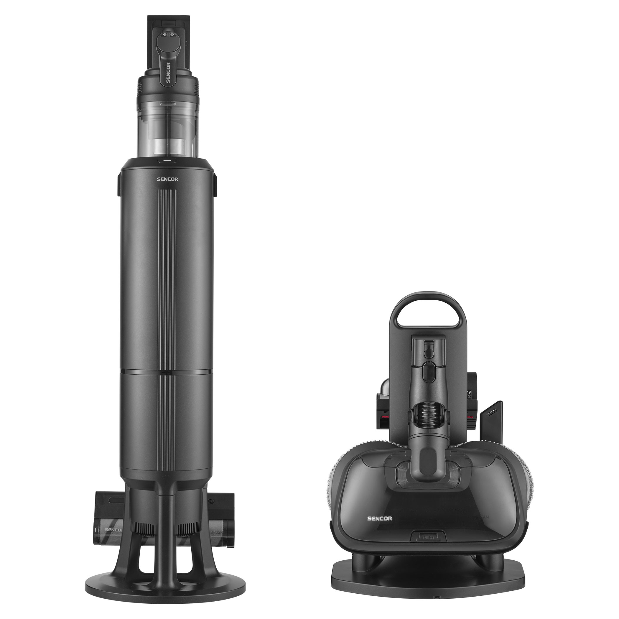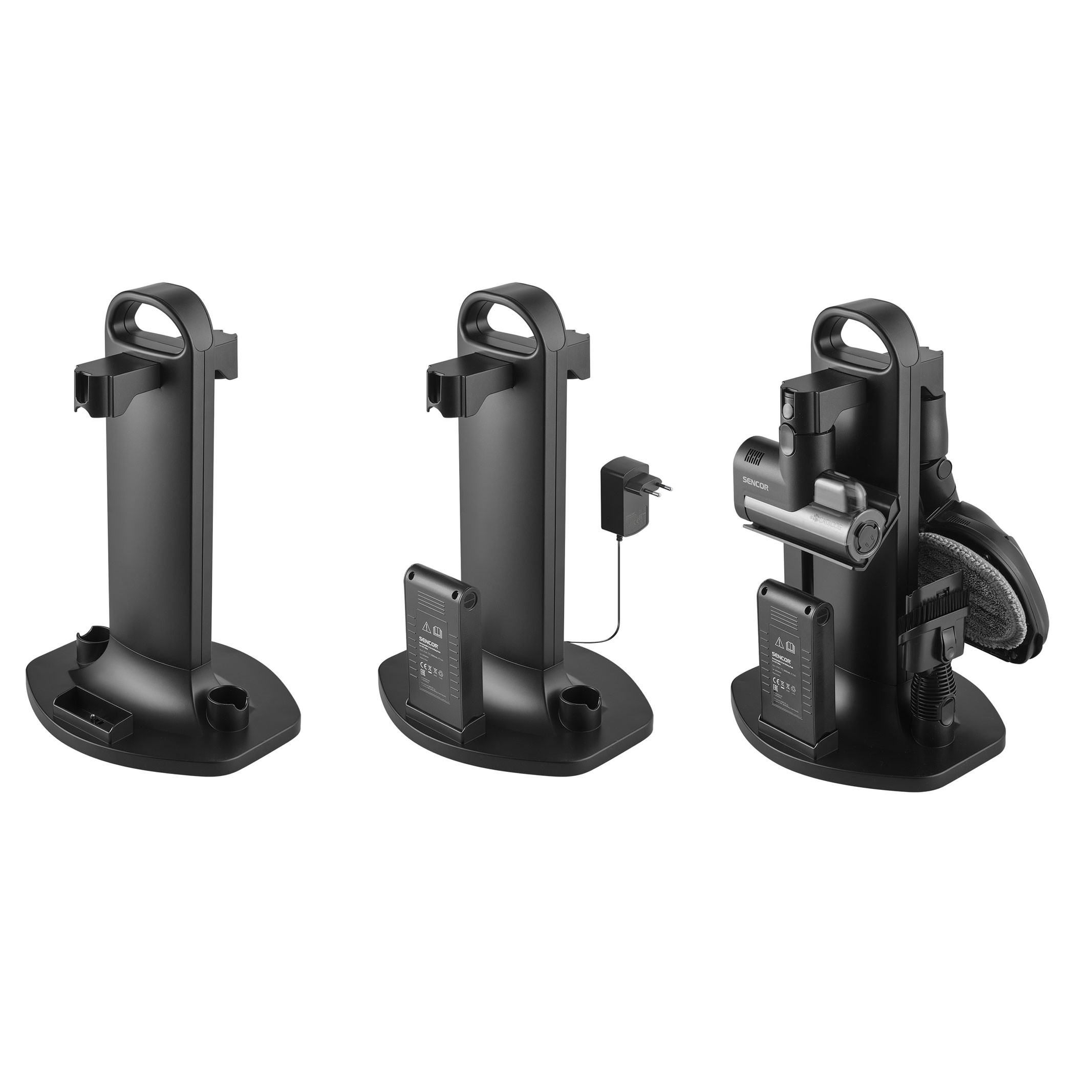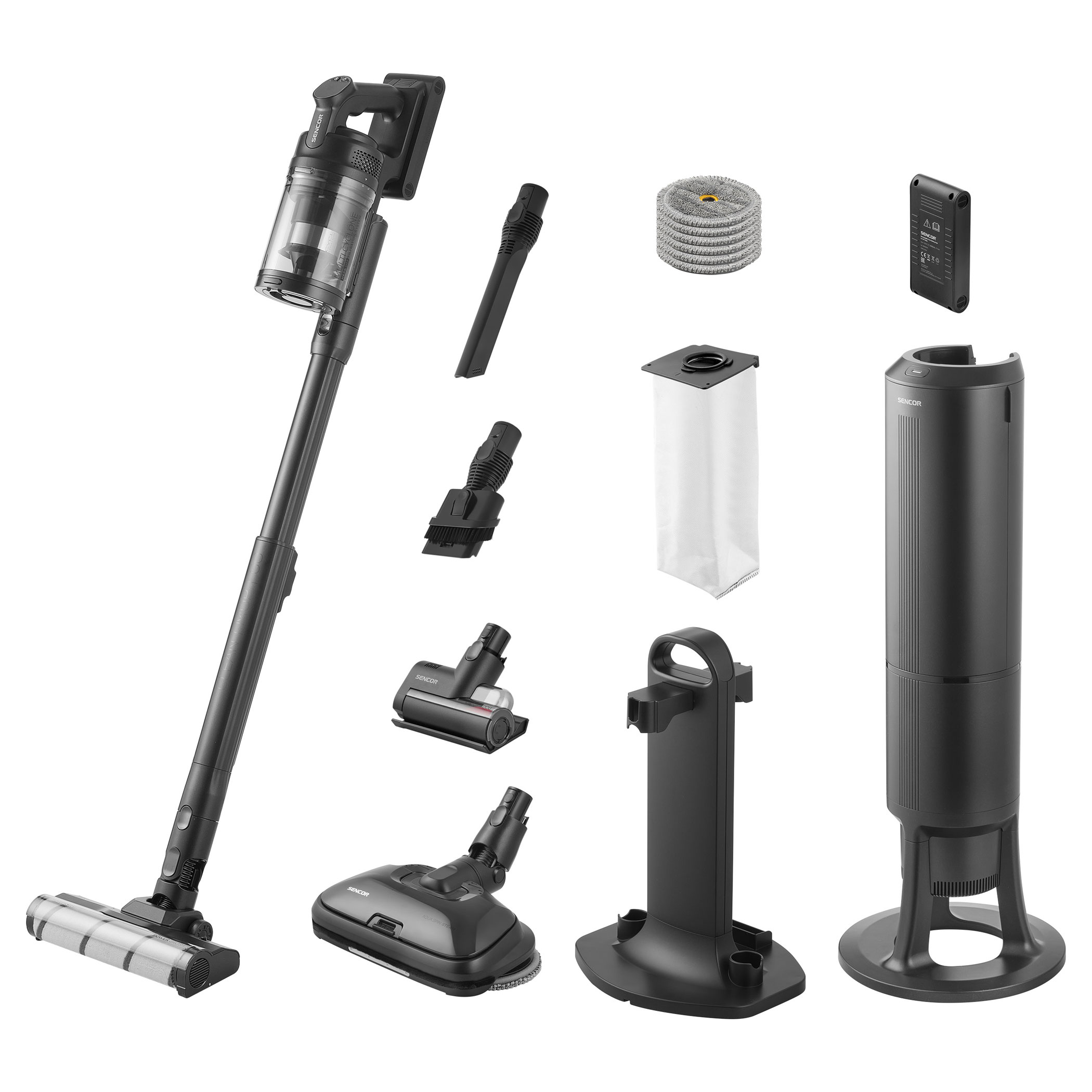 SVC 9486BK využívá 500W digitální motor a multicyklónovou filtraci s HEPA H13 pro vysoký a trvalý sací výkon. Smart Dust Sensor automaticky reguluje tah podle míry znečištění, čímž optimalizuje spotřebu a prodlužuje provoz. V balení jsou dvě Li-ion baterie s kapacitou 3 000 mAh a napětím 25,9 V, které umožňují výdrž až