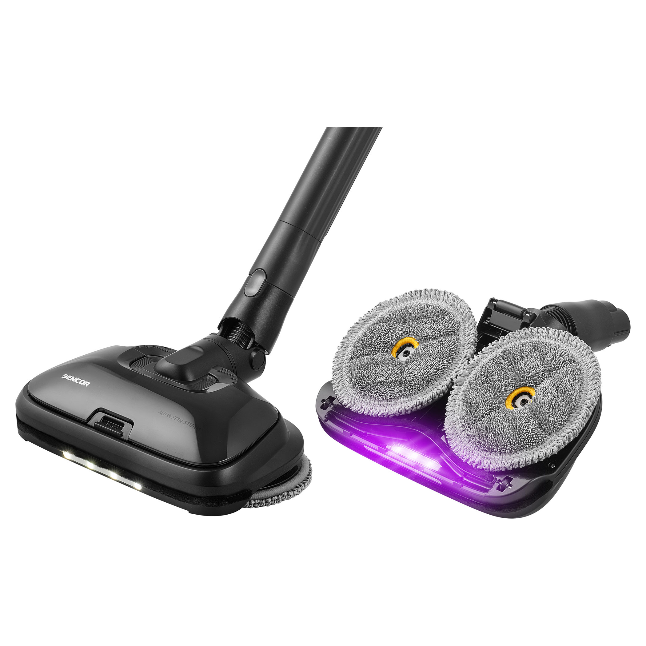 - Vysává, mopuje a čistí párou zároveň: Aqua Spin Steam se dvěma rotačními mopy odstraňuje nečistoty, horká pára hygienicky čistí bez chemie a UV-C světlo pomáhá likvidovat mikroorganismy