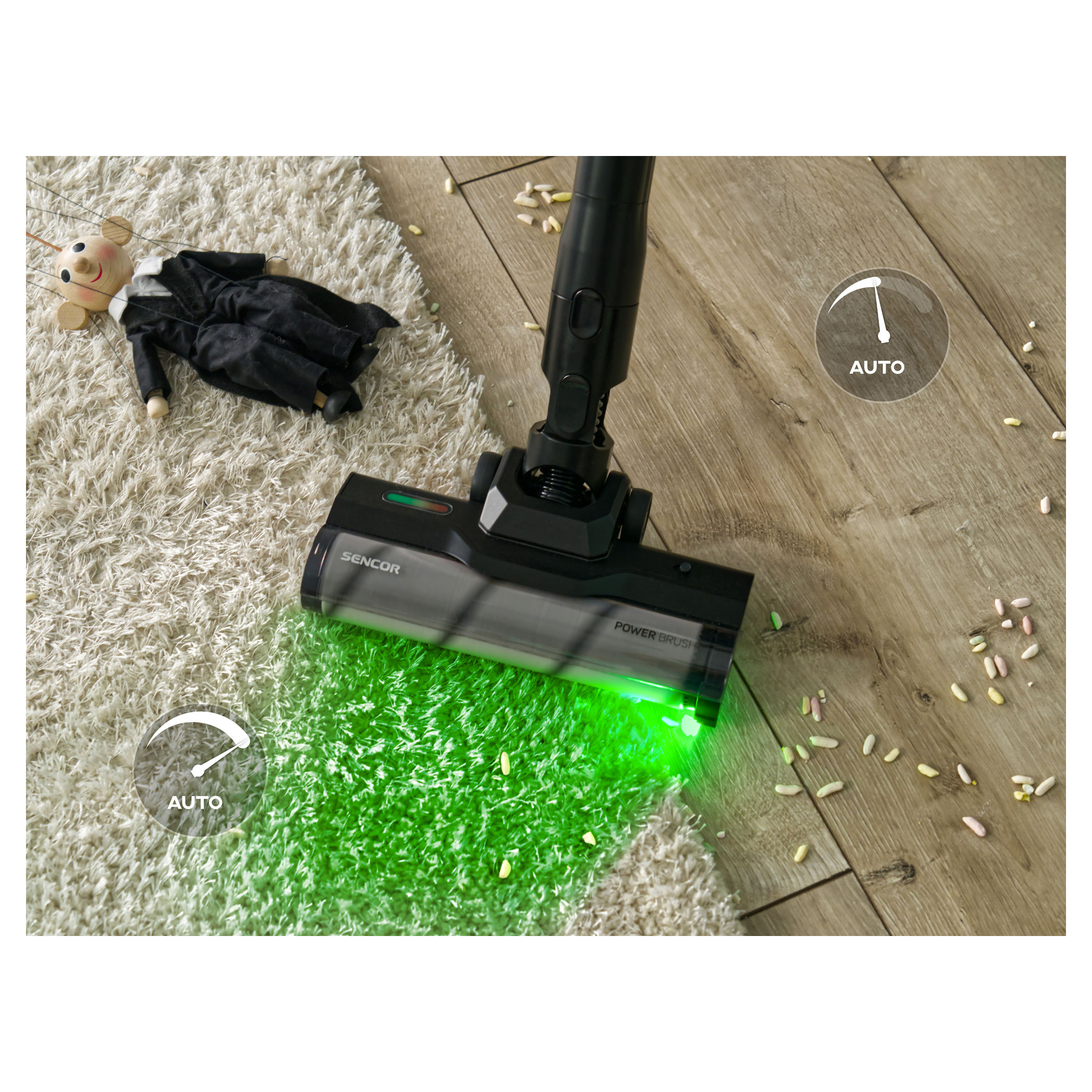 - Vidíte každé smítko: Motorizovaná hubice s MicroDust Vision LED osvětlením odhalí prach v každém rohu.