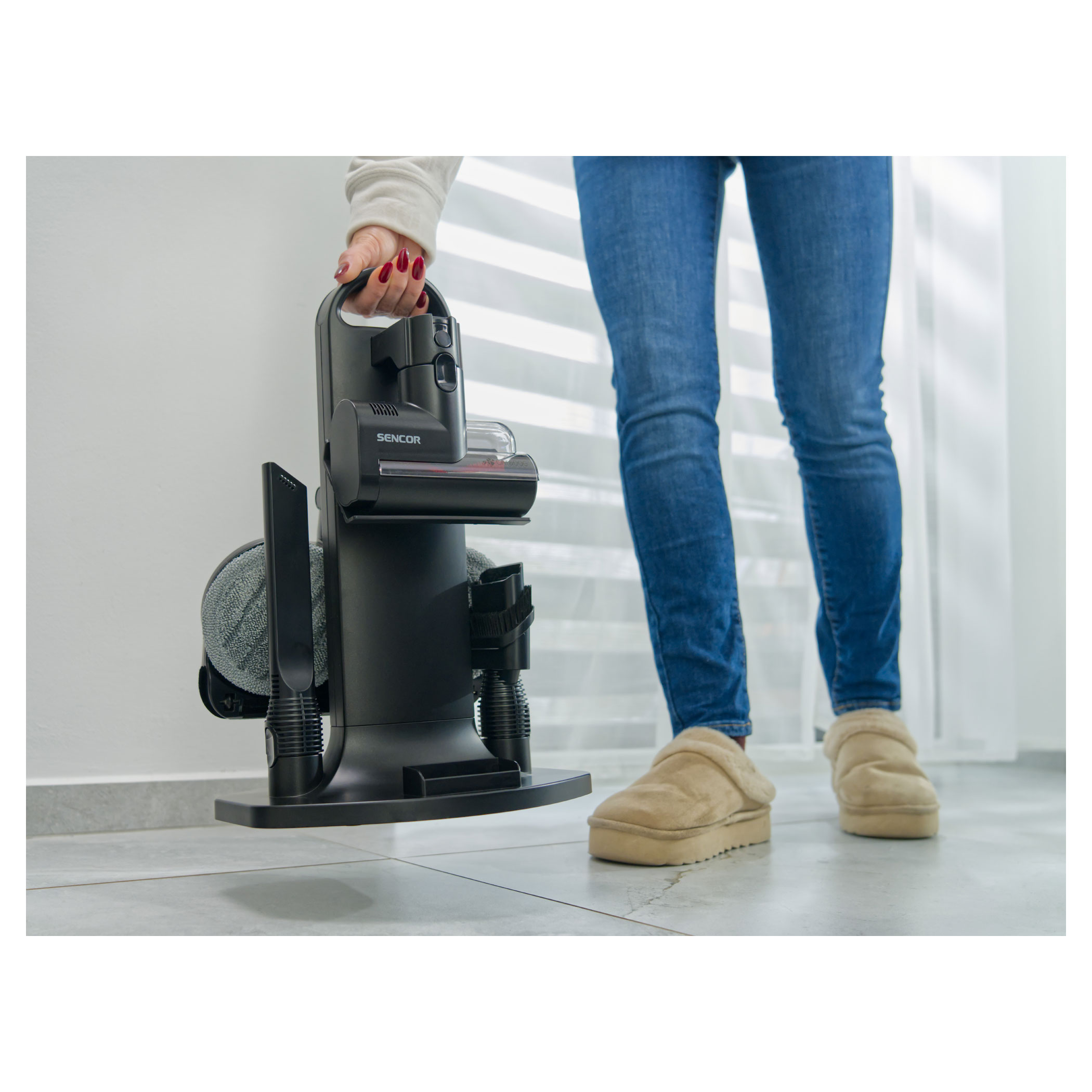 Tyčový vysavač Sencor SVC 9476BK spojuje vysávání se zviditelněním mikročástic prachu, mopování i dezinfekci povrchů v jednom přístroji. Vysavač je vždy připraven k okamžitému použití díky automatické čisticí stanici s dobíjením a čištěním filtrů.Méně údržby, více pohodlí