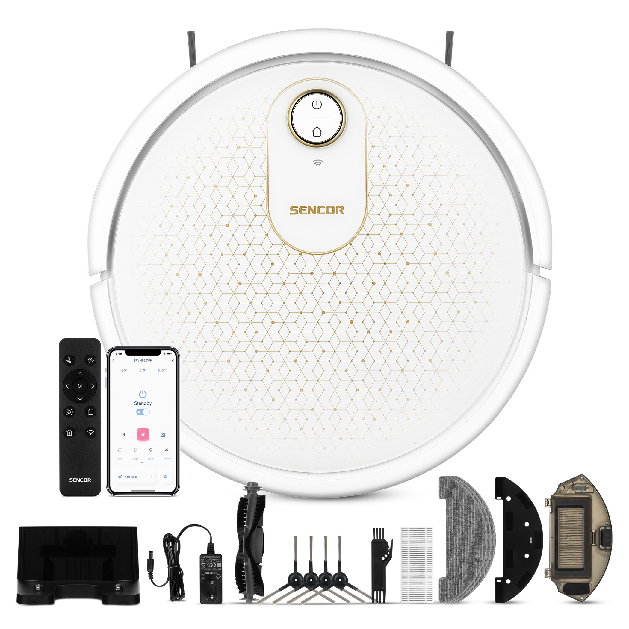 SENCOR Home umožňuje plánování úklidu a nastavení výkonu vysávání a mopování z mobilního telefonu. Aplikace umožňuje ovládat vysavač klidně z chaty nebo z kanceláře a plně v českém jazyce. K dispozici je i praktický dálkový ovladač pro okamžité ovládání přímo v domácnosti. Umožněno je jednoduché spárování pomocí Bluetooth.