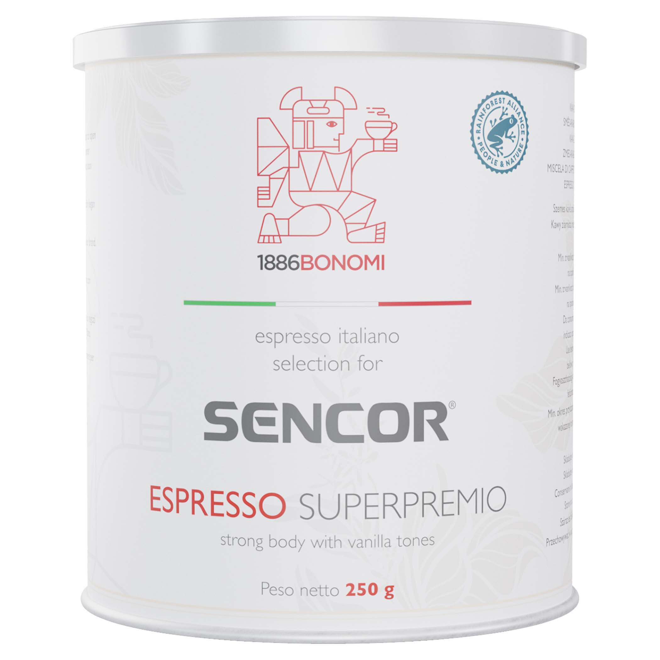 Prémiová kávová směs Arabica káv z certifikovaných Rainforest Alliance oblastí ze střední Ameriky (Kolumbie, Guatemala) doplněná decentně o indickou Robustu.Díky pražení na stupeň medium roast můžete v šálku espressa objevit chuť vanilky, piniových oříšků doplněné o sušené ovoce.