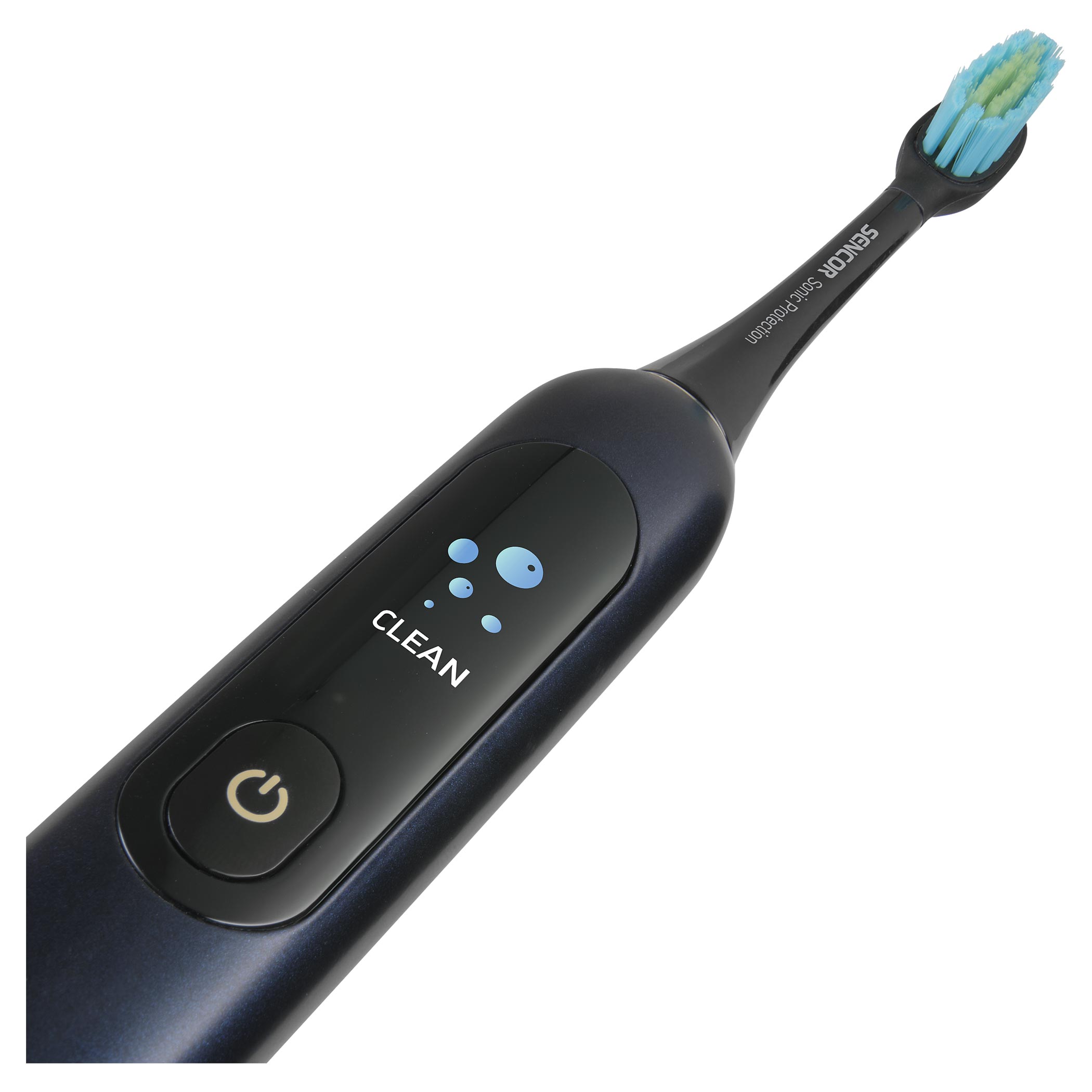 Chytrý sonický zubní kartáček SOC 5010BL se skvěle postará o vaše zuby i dásně. Používá stíravý pohyb a čistí rychlostí až 38 000 kmitů za minutu. Navíc disponuje inteligentním časovačem a technologií Quadpacer, které vám společně pomohou k perfektně čistému chrupu. Kartáček totiž během čištění každých 30 sekund zavibruje, a tím upozorní, že se má kartáček přesunout do další části úst. Zároveň kontroluje celkový čas 4× 30 vteřin, tedy doporučené 2 minuty. V případě, že během čištění na zuby moc tlačíte, tlakový senzor vás upozorní, protože jinak by mohlo dojít k poškození zubní skloviny. V nabídce jsou hned 4 přednastavené programy pro čištění zubů a jemnou péči o dásně – Clean, Soft, White a Massage.
